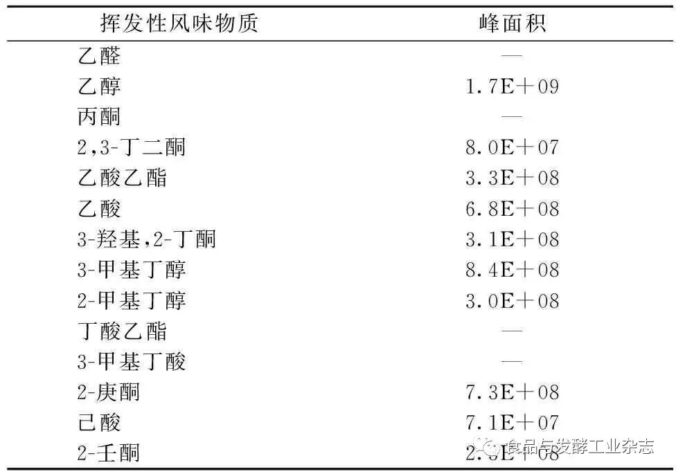 Table 2 Peak area of the main volatile compounds in fermented yak milk