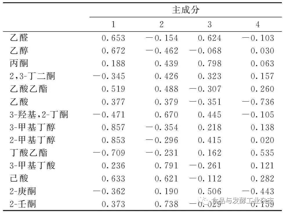 运用主成分分析法分析发酵酸乳中的主要挥发性风味物质,它可以将多个变量指标约化为少数几个综合指标,有助于对传统发酵牦牛酸乳色谱骨架成分的分析。
