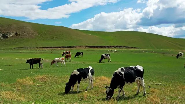 自驾途中遇见数不尽的羊群,马群和牛群。忍不住想和黑黝发亮的牛儿合个影,还未走近,牛群警觉地瞪着靠近的外来生物,眼睛瞪得像牛魔王似的,吓掉了孔二的小魂儿,赶紧一溜烟儿跳回车里逃走。