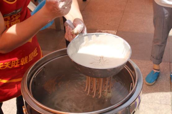 正值午餐时间,各地的特色美食让同学们大饱口福,体会舌尖上的文化:香甜的赤豆元宵,可口盐水鸭散发南京浓浓六朝古都风韵;诱人的红枣、核桃、巴旦木,大家垂涎已久的奶茶、牛肉干让人想起新疆的别样风情;四川用其特色的火锅勾住了来往同学的脚步,让人忍不住驻足品尝;重庆更是当场制作酸辣粉,亲眼见证制作过程,惊奇之余让人迫切想尝一尝味道;来自西藏的青稞,酸奶糖让人仰慕已久;各式广东点心,也是让人欲罢不能。