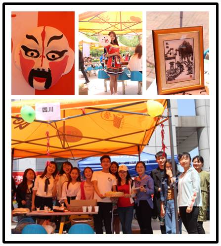 活动现场展现了四川、江苏、西藏、新疆、广东、安徽等地的风土人情和特色美食。置身其间,仿佛将广阔祖国浓缩于这方寸之间。京剧脸谱、陕西小鼓、南京雨花石……让前来参观的同学大开眼界,更有同学穿上了藏族、苗族等少数民族服饰,成为了一道亮丽的风景线,展现了家乡特色之美。