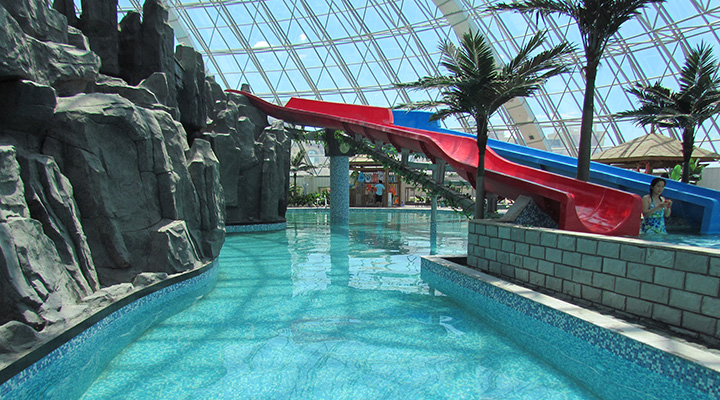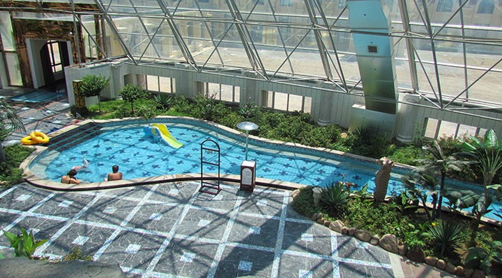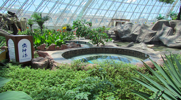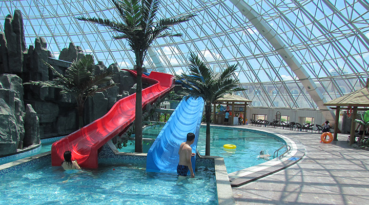 看见那个圆顶的蓝色建筑了吗,那就是室内温泉哦!