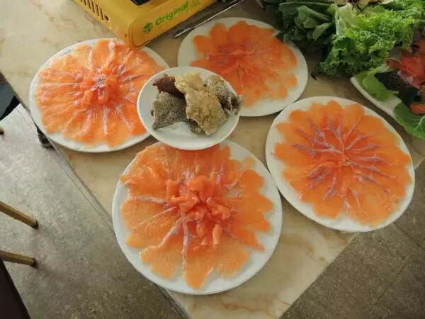 【吃三文鱼的地方】:新城花马街的彩虹三文鱼,沱江鱼府38元一斤,算是比较实惠的了。他们家的芥末、醋、酱油一套38元,味道都很正宗,鱼也很新鲜饭局必去哈哈~
