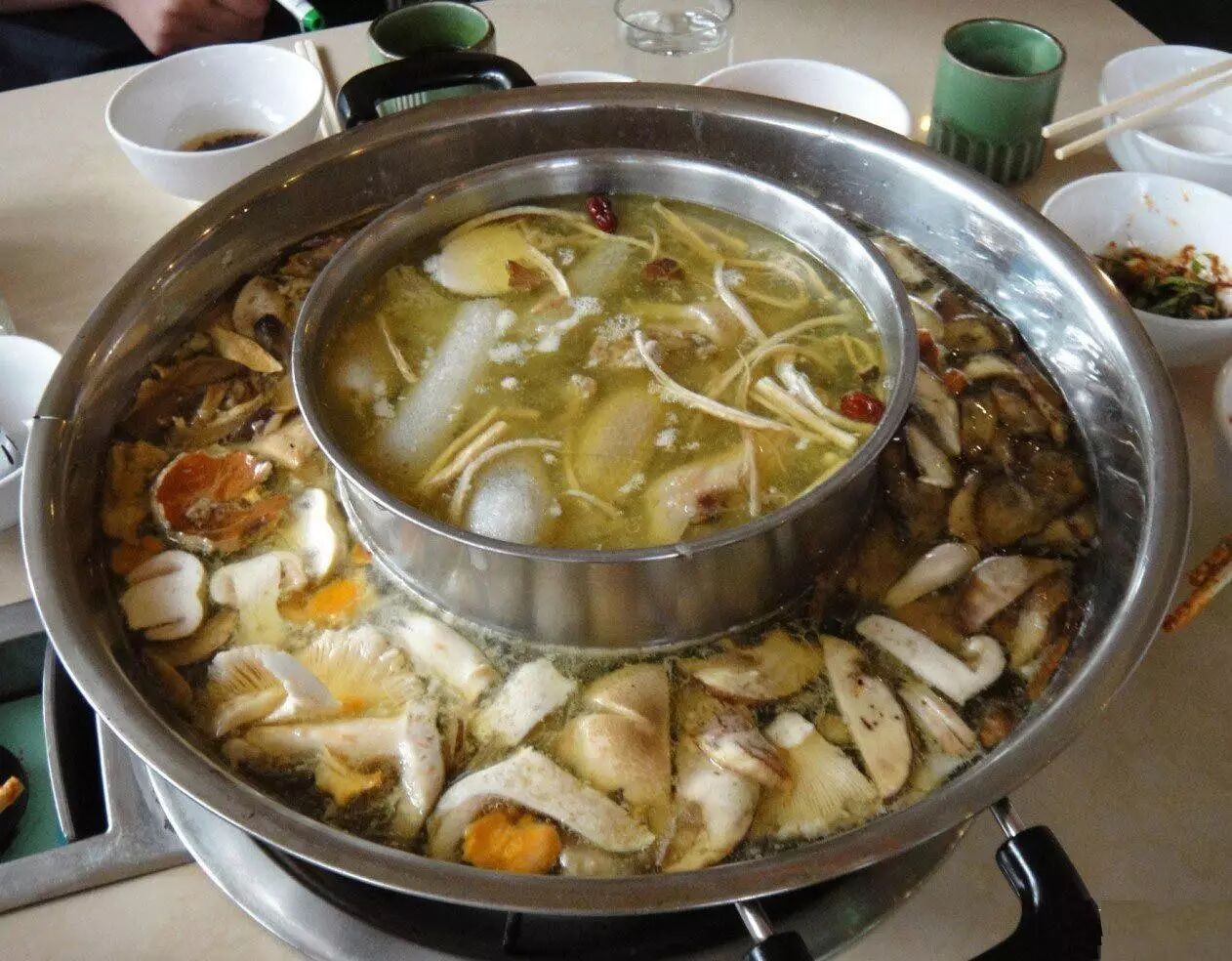 【吃野生菌的地方】:东巴谷野生菌,火锅,新城花马街。号称采用多年的玉龙雪山的泉水、高原雪山的虫草、秘不可传的46种野山菌,通过12小时文火煮炖而成;不过味道确实很鲜美。(口水中……)把松茸、鸡棕、牛肝菌、青头菌等菌子加到乌鸡汤里,炖上20分钟,才可以吃,一定要喝汤。还有美食庙会街的石锅鱼,土鸡汤炖的,比较特色。(简直是折磨啊,看着一锅美味却不能吃,还要忍受不时飘过来的香...)价格不便宜啊。(都是各种的菌,能便宜嘛)