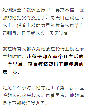 那时冠军灶一顿凉菜四个,热菜八个,有酸奶喝汽水,住两人间,待遇很好,但是腿坏了之后,吴京的世界又不同了。