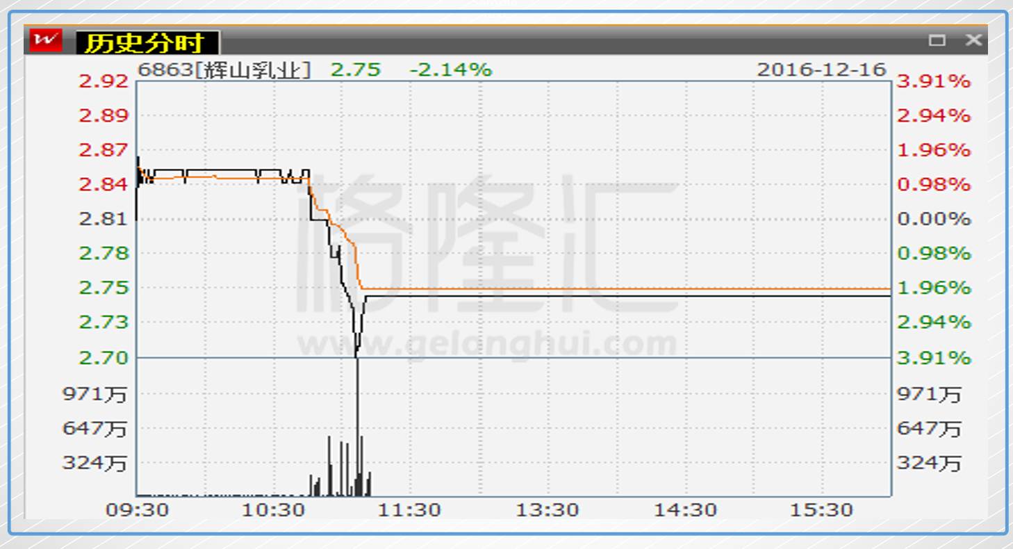 所以,整个这段时间辉山的股价非常平稳,直到今天。