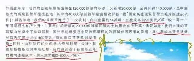 辉山乳业的牛逼之处说出来也很简单,就是自己种苜蓿草。公司拥有国内最大的苜蓿草生产基地,根据年报显示,2014财年收割了14万吨的苜蓿草,一吨只要92美元。
