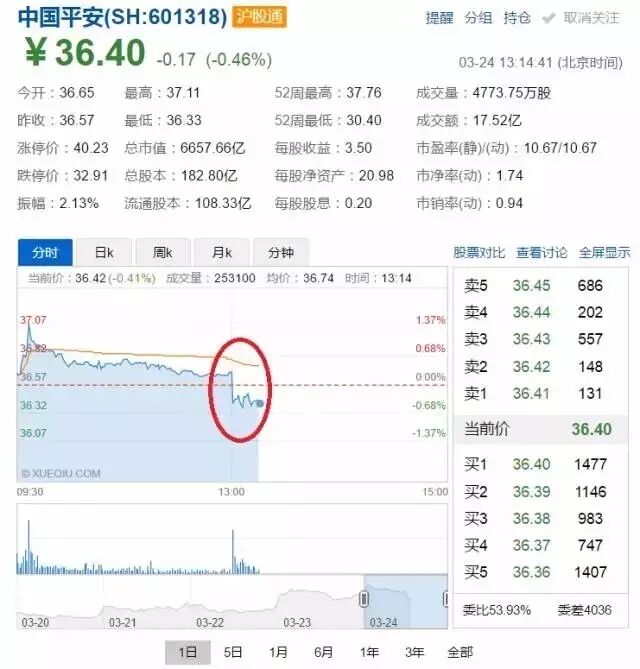 所以下午开盘后,平安直接跳水……