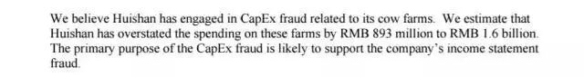 关于这个问题,浑水祭出了第二个大招,宣称辉山乳业通过虚增牧场的资本支出,从而将高额的运营支出移出利润表(不明白的同学可以百度“资本支出 空格 造假”),涉及金额高达9至16亿人民币。