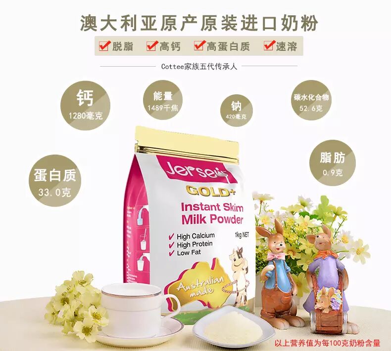 | 英文名称 | Jersey Instant Skim Milk Powder 1kg |