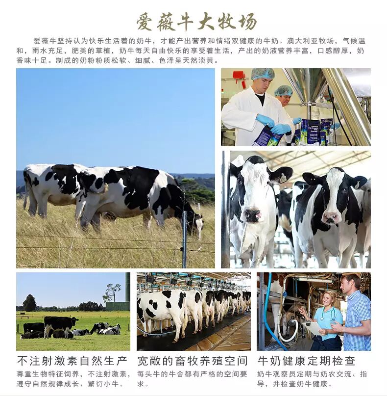 Jersey爱薇牛奶粉,奶源来自澳大利亚百年COTTEE家族自家牧场,自然放牧与科学管理结合,不注射催产素,奶牛自由、快乐、健康,确保了奶源的纯正品质。Jersey爱薇牛秉承“快乐奶牛,优质奶粉”的经营理念,从原料到工艺,严格管理,全力呵护消费者的健康。