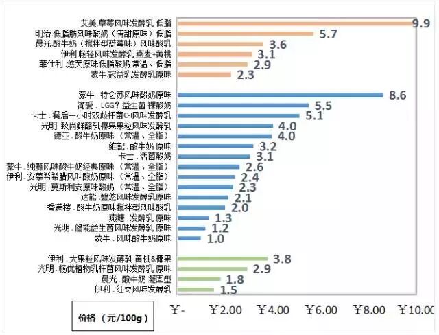 价格不能完全决定品质,两者不成正比。本次比较试验中,25款酸奶的平均价格为3.4元/100g。