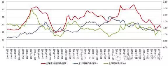 IFCN同时公布的11月份全球饲料平均价格为21.2美元/100kg,折算约为1.35元/kg,环比下跌4.1%,同比跌幅为15.9%。