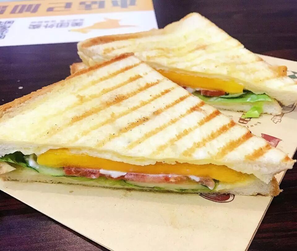 金黄酥脆的吐司表皮,马苏里拉芝士带来的柔软夹层,夹层中大片新鲜芒果,还有生菜黄瓜西红柿的零星点缀,让喜欢水果的你,得到大大的满足。