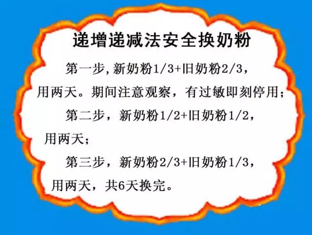 宝宝消化机能弱,对常喝的奶粉有一定依赖性,频繁更换(即“转奶”)易导致腹泻、便秘、皮疹等问题。即使转奶,也要在宝宝完全健康的状态下,不要选在接种疫苗期间,不要在早晨第一餐或睡前最后一餐。