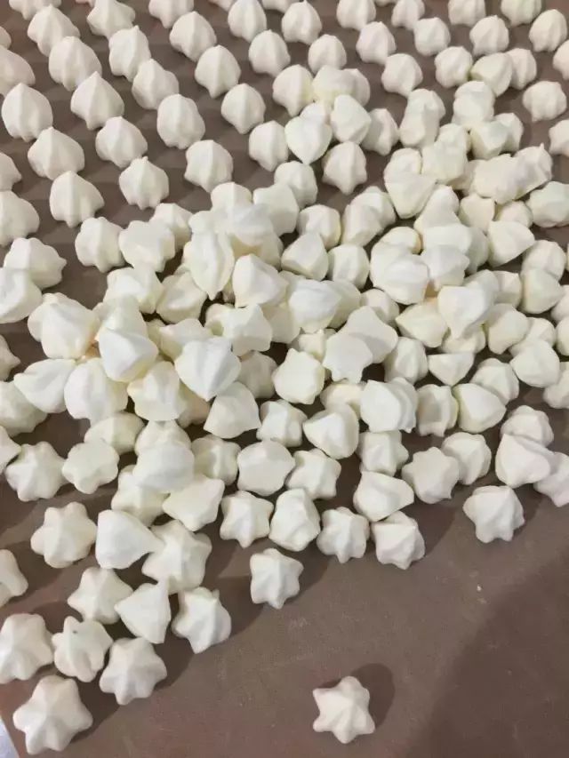 做法:①奶粉、玉米淀粉、酸奶一起拌匀至无颗粒糊状;②蛋清放入糖和柠檬汁,电动打蛋器高速搅拌至硬性发泡;③分3次将打好的蛋清糊与酸奶糊拌匀,做成溶豆糊;④装入裱花袋,挤到铺好油布或油纸的烤盘上;⑤烤箱设置温度为100℃,预热10分钟放入烤盘,时间设置60分钟……