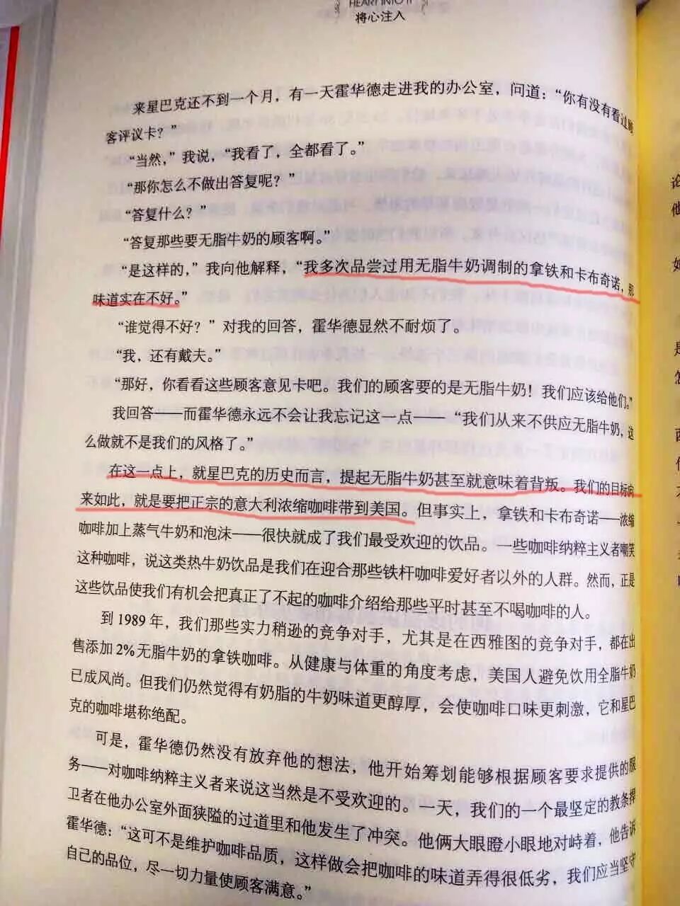 星巴克创始人始终反对在自己的店里提供脱脂牛奶,这本星巴克创始人的自传:【将心注入】中就写到完全是迫于商业压力不得不提供脱脂牛奶,并反复提到“脱脂牛奶会毁了拿铁!”