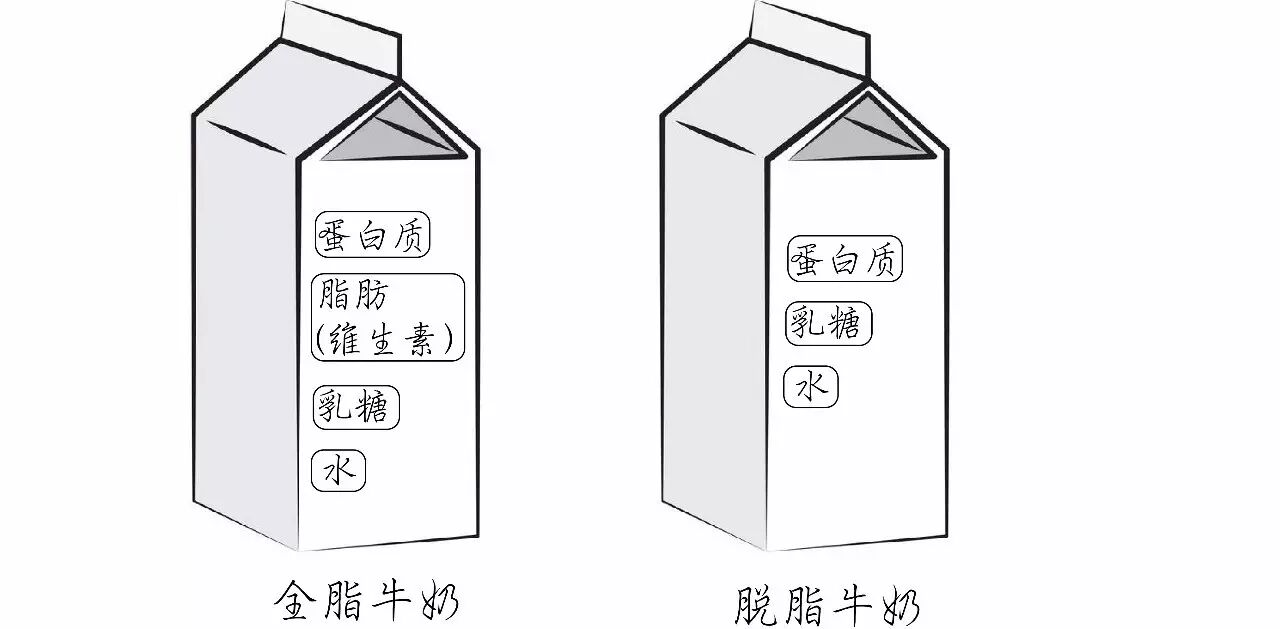 牛奶中三种最重要的成分,蛋白质,脂肪,乳糖(乳糖就是很多人一喝牛奶就上厕所的原因,所以即使喝的是脱脂牛奶一样无法避免乳糖不耐症)。取走了脂肪,可糖分还在,很多人错误的觉得脂肪是让我们肥胖的原因,其实糖才是我们身材的真正敌人,所以喝够量脱脂牛奶,该胖的还是胖。