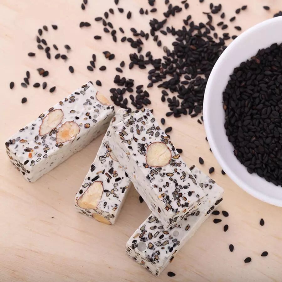 台湾进口、纯手工制作的牛轧糖,黑亮芝麻与天然奶源的细密结合,浓香袭人,馨香如浪。一口甜蜜,十分用心。