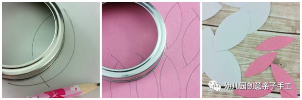 1.用圆形铁罐圈在卡纸上画出小兔子的耳朵(这个方法可以借鉴)