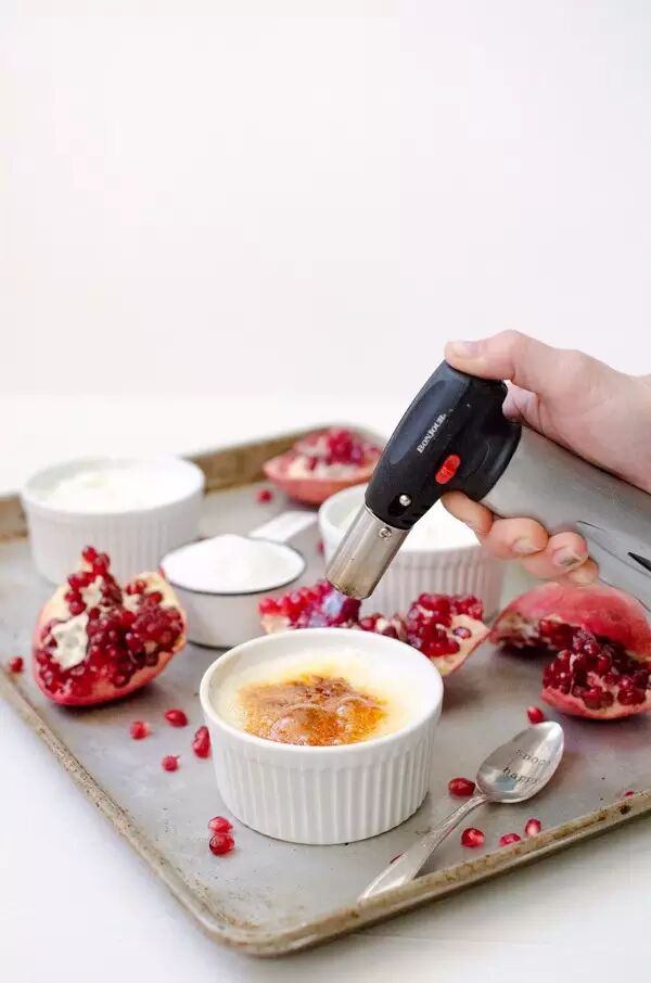 3.用甜点专用的烤火机或者放在烤箱里面2-3分钟,直到上面的白砂糖呈焦黄色;