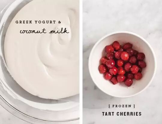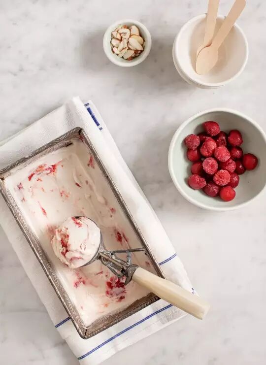 2.将酸奶、椰奶、蔗糖、枫糖浆、香草和盐搅拌均匀后,放入冰淇淋机里面,按操作说明操作;