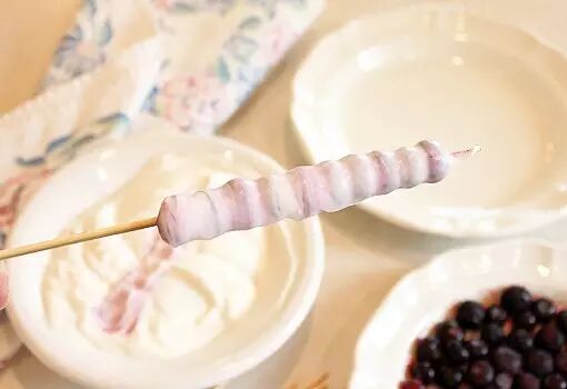 1. 蓝莓洗净用竹签串上;