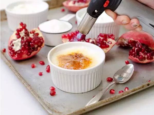 3. 用布雷烤火机烤表面,直到上面的白砂糖呈焦黄色;