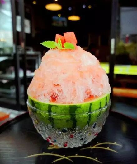 一口沙冰一口带着沙瓤儿西瓜
