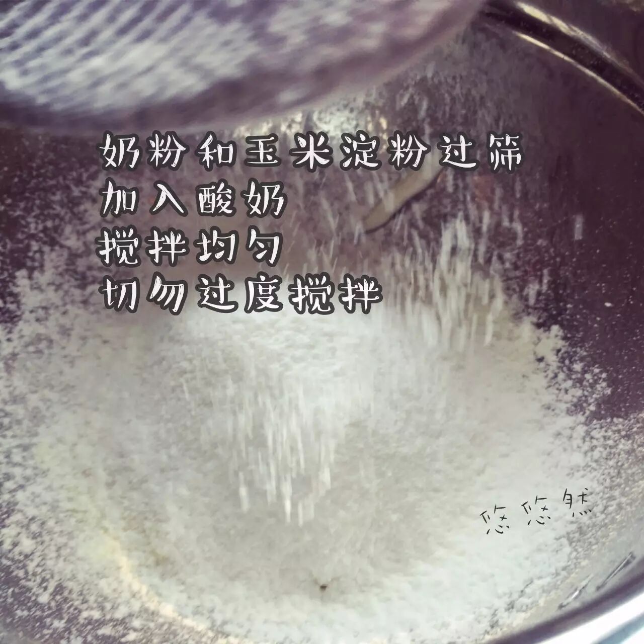 3:最后蛋白和酸奶糊搅拌过度了,蛋白消泡了。