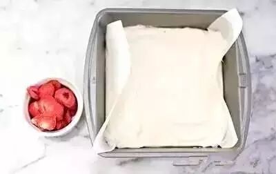 5.放在铺满糯米纸的容器内,放入冰箱冷冻2小时