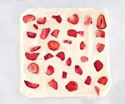 3.放入冰箱冷冻4小时,然后用刀随意破成碎片,好吃的酸奶皮就完成了。