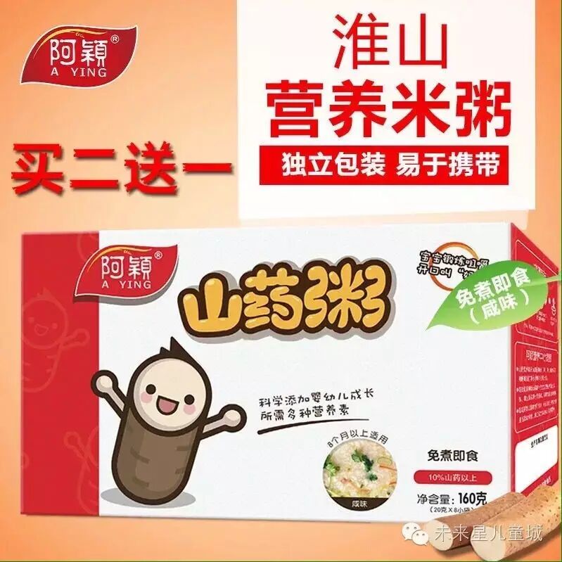 预存1元享阿颖山药营养粥 20克*8包甜味 婴儿辅食方便速食宝宝粥买二送一盒活政策动