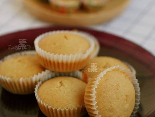 材料:低筋面粉250克、细糖粉75克、玉米油(或其他无味道的植物油)150ML、杏仁奶1又1/4杯、香草粉1茶勺、泡打粉1/2茶勺、小苏打1/2茶勺