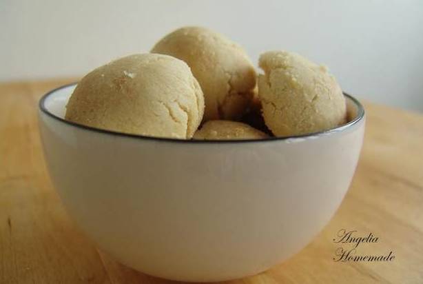 3. 搓出来的是有点粉答答的面团,将面团分成15g一个的剂子,每个剂子捏紧,并搓成小球。放在烤盘上,每个小球之间空3cm的样子,以此重复直到面团用完;