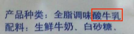 可以看到,产品种类中,第一个是“酸牛乳”,第二个是“风味酸乳”,前者是只有牛奶和糖,以及乳酸菌制作而成的酸奶,后者则是加入了果酱等食材的风味酸奶。而第三个则是“含乳饮料”,这种则无论口味是酸是甜,都不能作为酸奶来吃咯。
