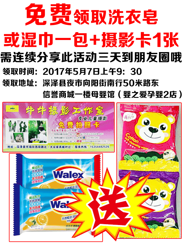 【活动地址】深泽县夜市向阳街南行50米路东信誉商城一楼母婴馆(婴之爱孕婴2店)