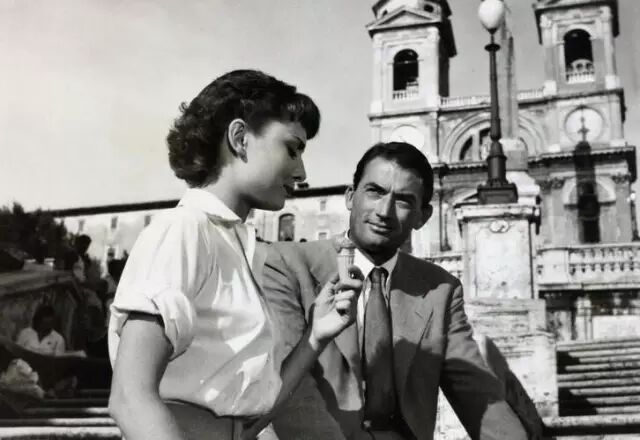 这部电影其中的一个镜头,让全世界所有的电影爱好者(和吃货)都念念不忘,那就是姿容无双的奥黛丽·赫本在西班牙广场上吃冰激凌。