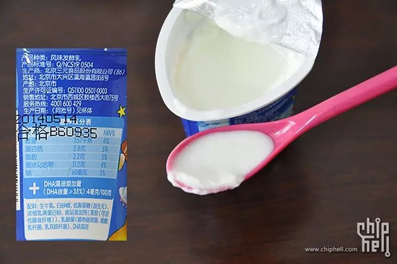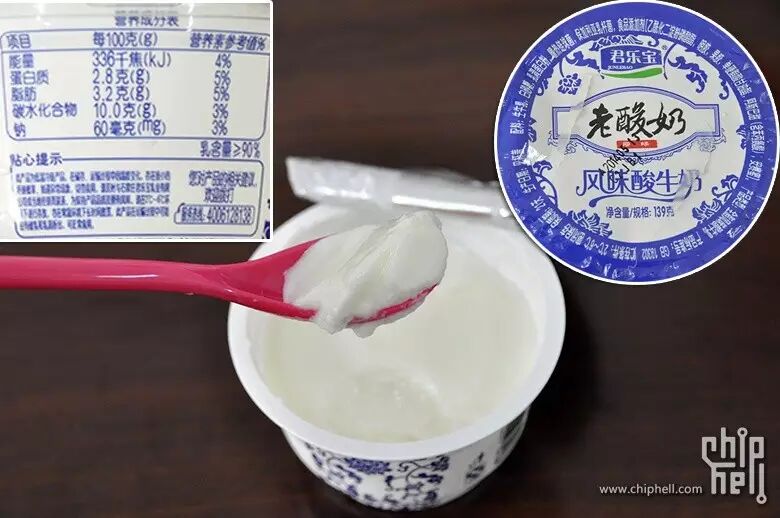 君乐宝老酸奶:颜色纯白,凝固状态良好,像豆腐脑,比万得妙的稠一些,酸度适中,甜度高,但比“北京记忆”低一点,没有涩口感,有奶香味,入口即化。仔细看标签,糖分依然很高,添加剂也不少,加了明胶、果胶等凝固剂,还有两种甜味剂。