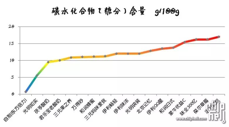 各种“酸奶”碳水化合物(糖分)含量趋势图