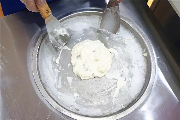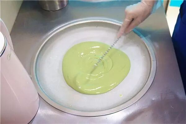 炒酸奶作为夏日最受欢迎的解暑神器。它还有一个超级洋气的名字——叫做Yogurt Ice Cream,也就是酸奶冰激凌,名字听起来就已经很诱人了。所谓的“炒”,就是将酸奶放入炒酸奶的设备中,来回翻炒。在制作过程中用的是铲子,制作动作更像是炒菜,故称之为炒酸奶!