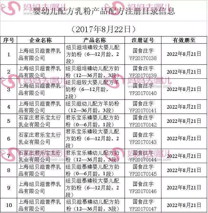 本次获批的企业包括纽贝滋和君乐宝两家企业。