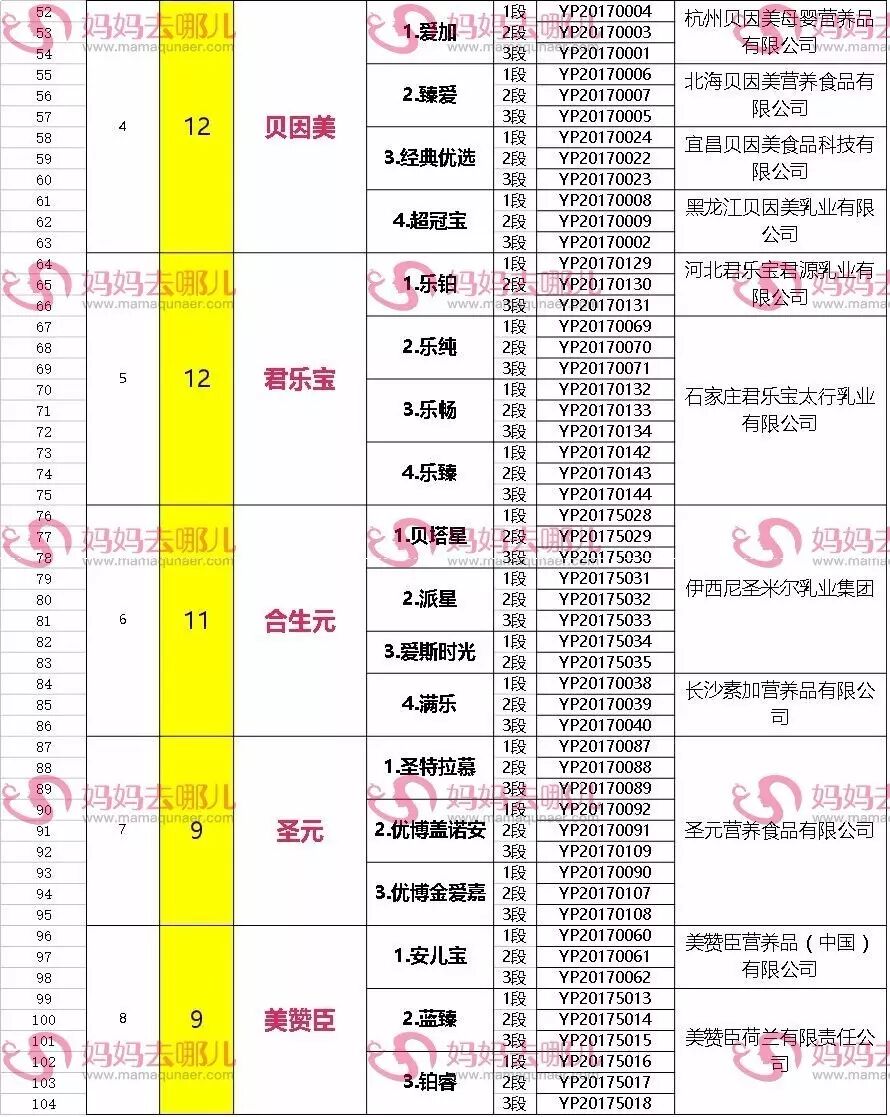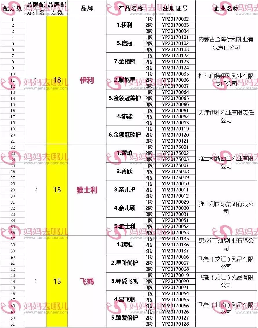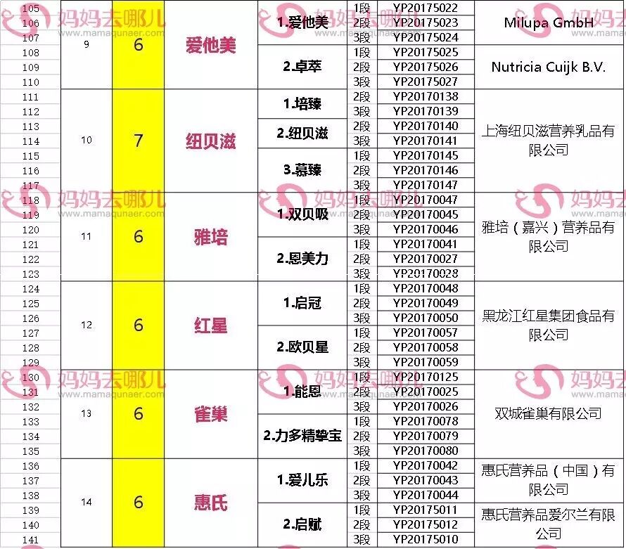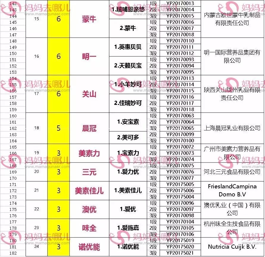 小编统计这6批次名单发现,共有24家企业的约63个品牌、共计182个奶粉配方获得通过。