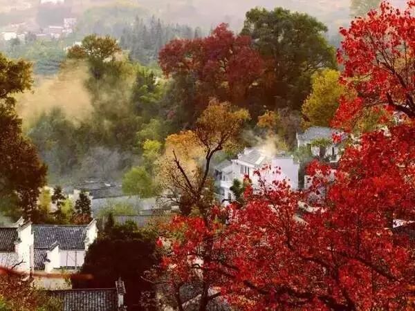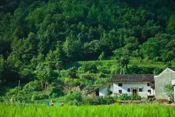田地里白墙黑瓦的小村升起袅袅炊烟,