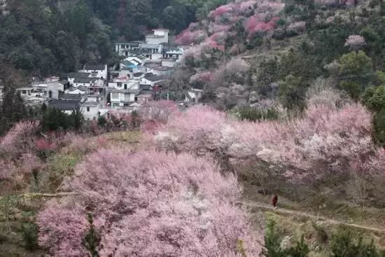 歙县卖花渔村漫山遍野的梅花竞相盛开,