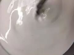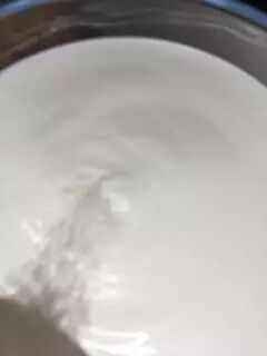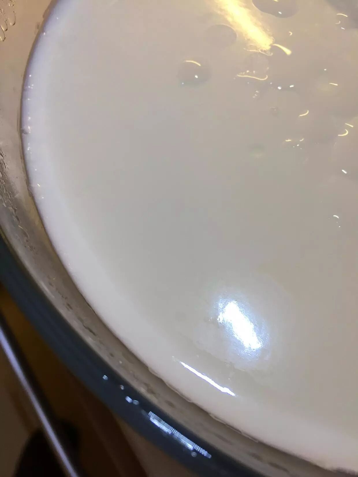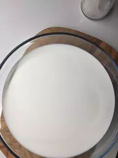 均匀撒入菌粉后,看上去微波粼粼的牛奶表面。