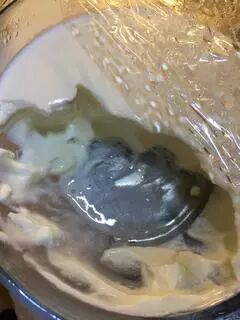 小心翼翼地揭开保鲜膜,你会看到冬季冰湖一样光洁美好的表面。