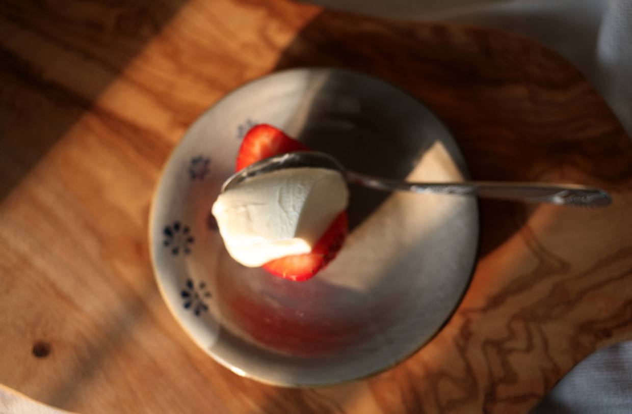 即使挖到容器底部,也看不到乳清析出。
