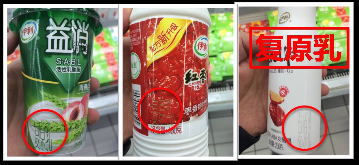 如上图所示,伊利酸奶的配料大部分用的是复原乳!复原乳也叫大包粉,大包粉营养较生牛乳差距很大,进价也很低,我国每年都会从国外进口大量的大包粉,因为很便宜!