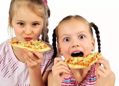 大口喝饮料大口吃披萨